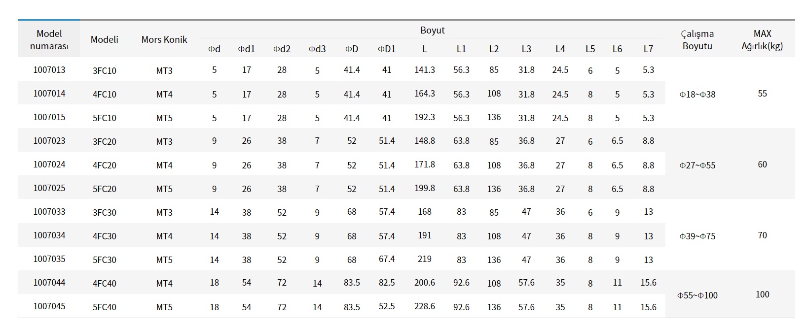 - Mors konik tip ve düz tip her modelden bağımsız olarak aynalama imkanı sayesinde NC’ye kadar geniş kullanım