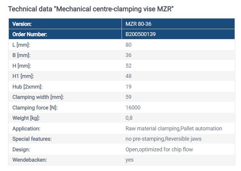 Merkezi sıkıştırmalı mengene serisi MZC, masif ve burulmasız yapısıyla öne çıkar. Büyük sıkma genişliği ve yüksek sıkma kuvveti, çok eksenli işleme merkezlerinde evrensel ve esnek kullanıma olanak tanır. Optimize edilmiş ve kompakt tasarımın yanı sıra geniş yelpazedeki sıkıştırma çenesi tipleri sayesinde, farklı müşteri ihtiyaçları için iş parçasına optimum erişilebilirlik ve farklı makine konseptlerinde optimum erişilebilirlik elde edilebilir.