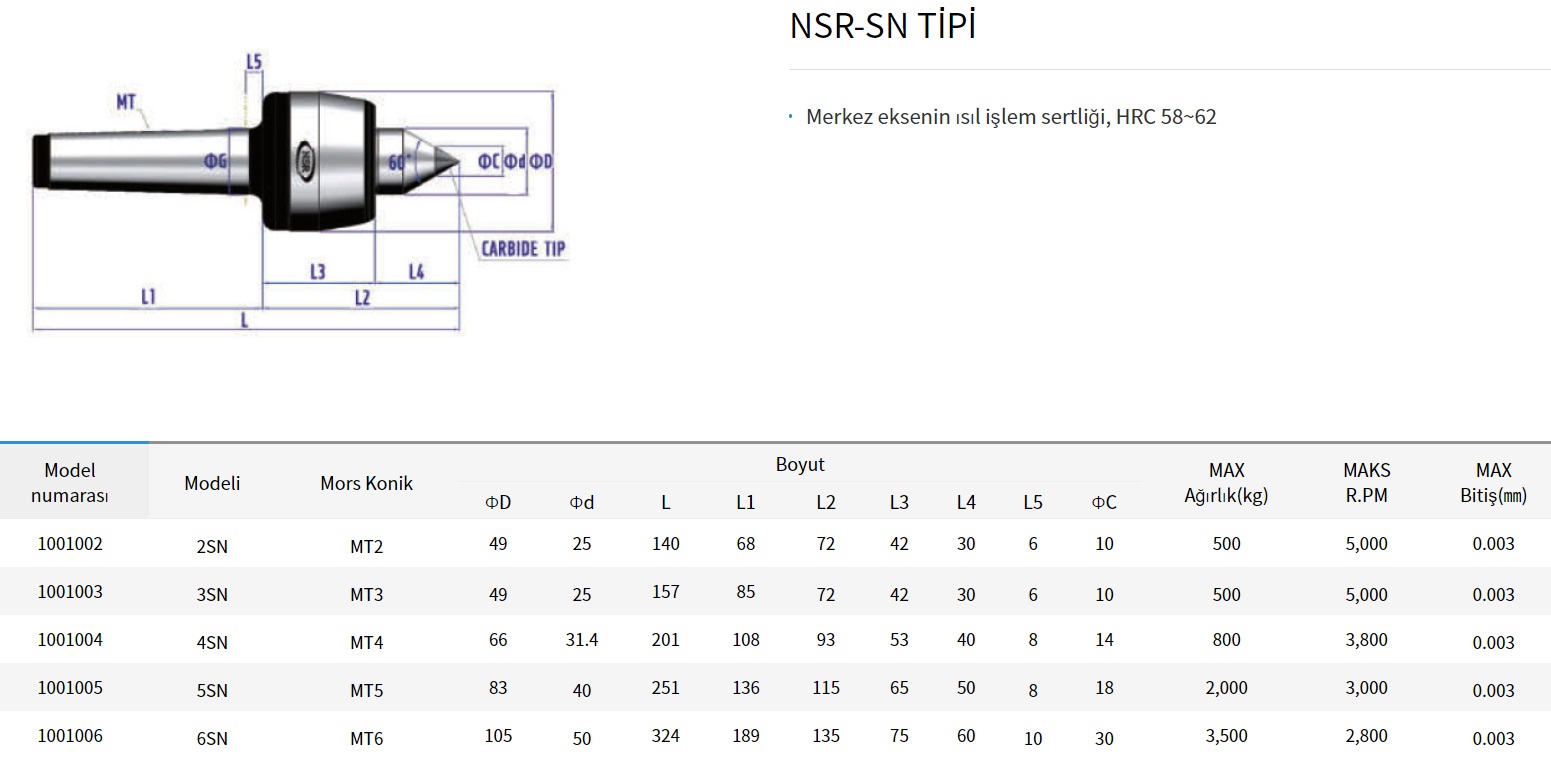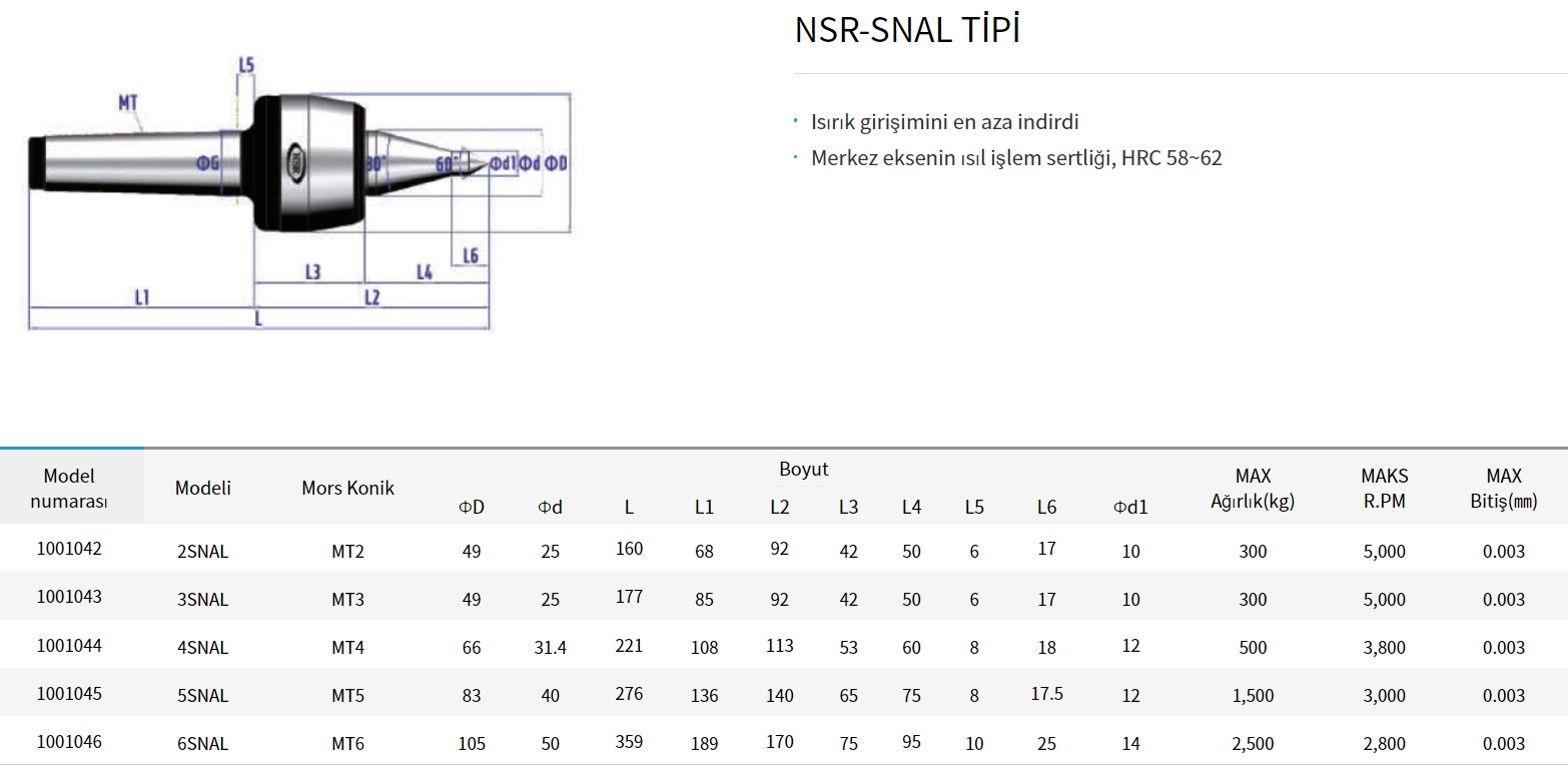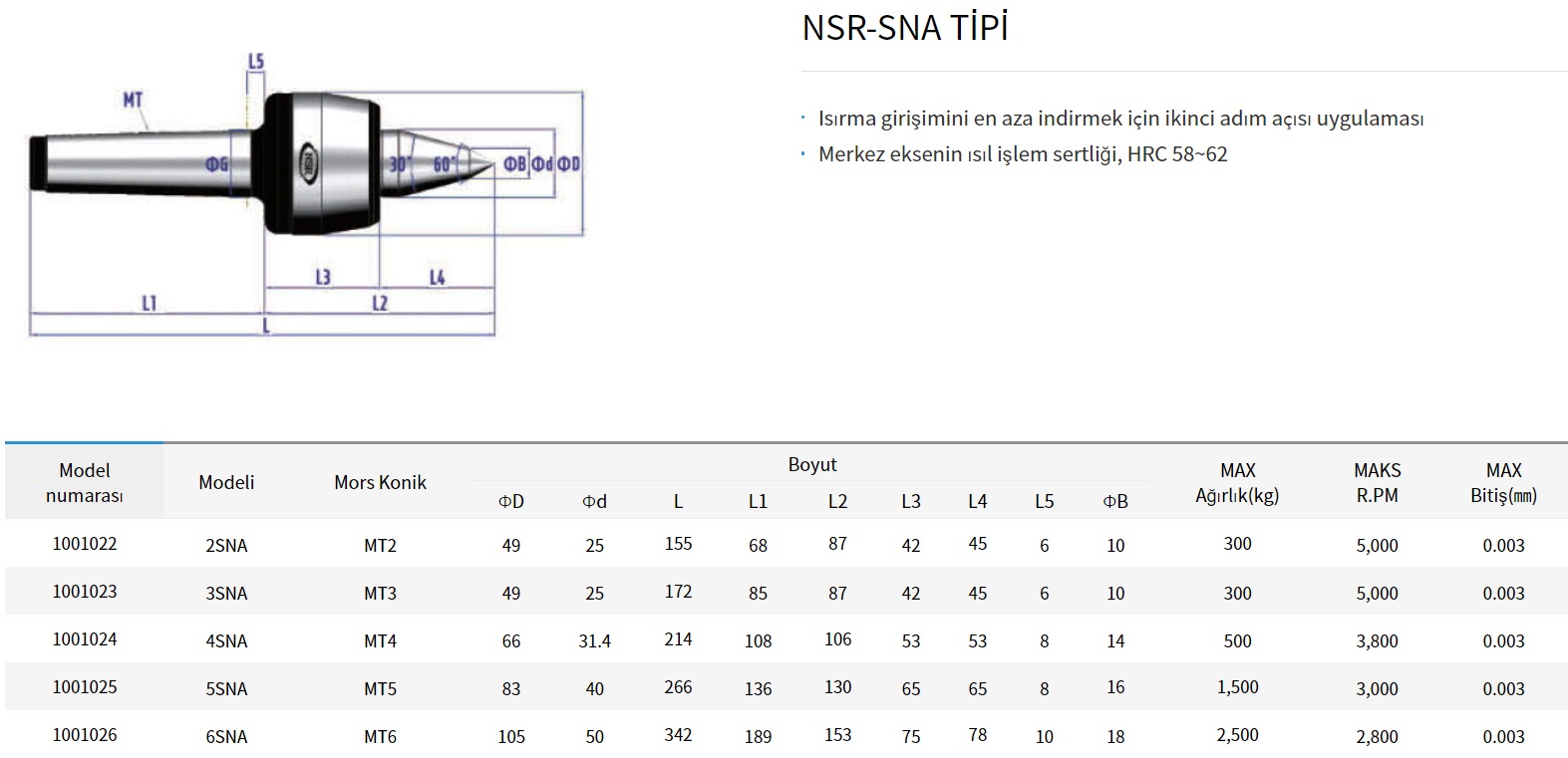 • Üç katlı yatak yapılarının yüksek derecede hassasiyetle kullanılmasıyla yüksek derecede dönme doğruluğu ve yüksek dayanıklılık